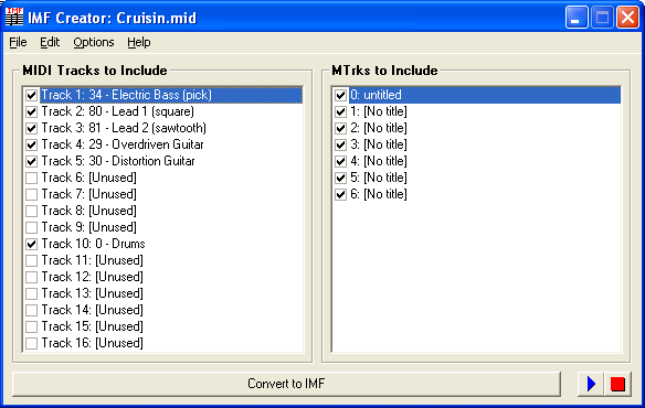 MTrks are data structures found within MIDI files. An MTrk can hold data for one or more MIDI tracks. If you don't quite understand MTrks, that's alright. This ability is there for you to try different settings to get your IMF file sounding as well as possible.